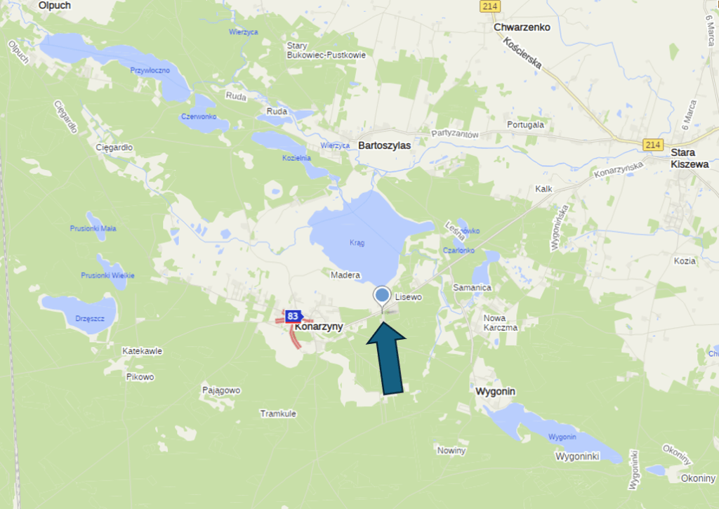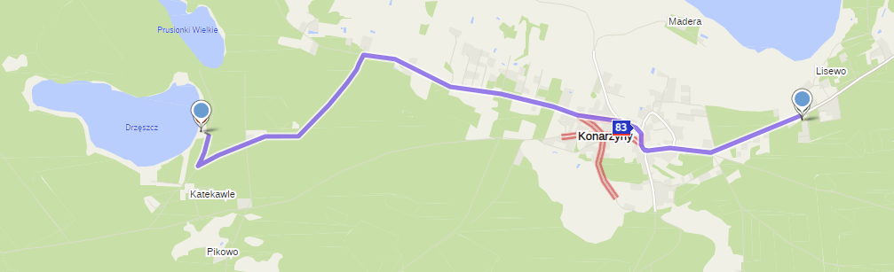 - Jezioro Drzęszcz – około 5 km. Duża piaszczysta plaża, jezioro otoczone lasem.